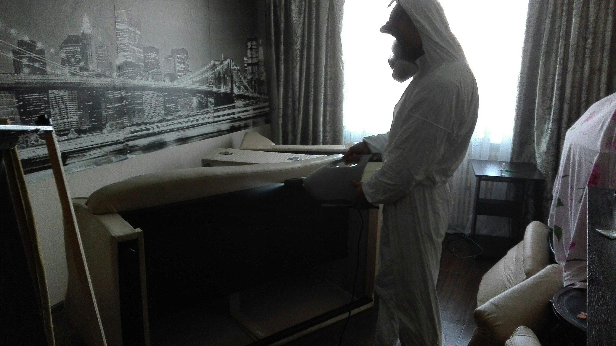 При обработке от клопов нашей санитарной компанией в Твери, специалисты — дезинсекторы обрабатывают инсектицидами места их обитания (кровати, диваны, обратную сторону околокроватных ковров) и места возможного расселения (щели вдоль плинтусов, бордюров, места отхождения обоев, вокруг дверных и оконных проемов, под подоконниками, вокруг вентиляционных решеток, щели в стенках мебели, ковры и картины с обратной стороны, сухую штукатурку при облицовке ею стен).
